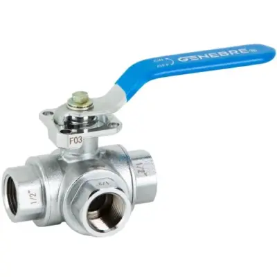 Genebre Art3272E 3-Way Brass L-Port Ball Valve (Direct Mount)