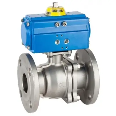 Genebre Art5540 Stainless Steel Flanged 3-Way L-Port Ball Valve Fitted With a GNP Pneumatic Actuator